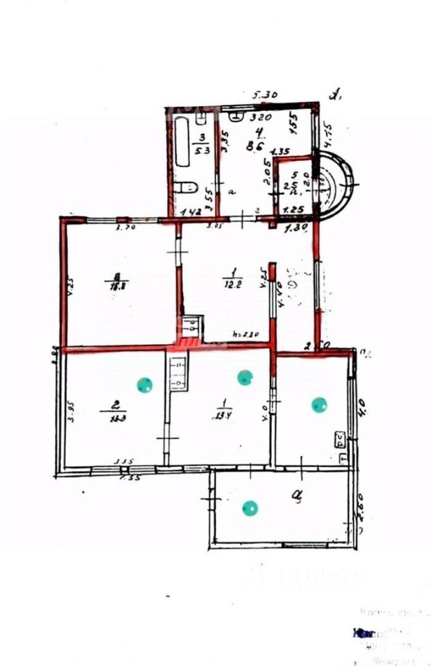 1/2 часть одноэтажного дома, 53 кв. м на участке 3 сотки. Три комнаты 13.7 кв. м, 13.2 кв. м, 11 кв. м и кухня 12 кв. м.