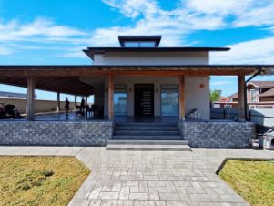 -Дворовая территория, отмостка по периметру дома, место парковки авто, зона отдыха и зона барбекю - залиты красивым печатным бетоном.
