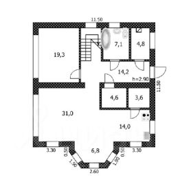 На первом этаже расположены просторная кухня - гостиная с отдельной комнатой для хранения продовольствия, санузел, гардеробная, и детская игровая.