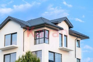 Коттедж состоит из 2-х этажей + полноценного цокольного этажа, в цокольном этаже гараж, бойлерная, место под сауну, с/у, комнату отдыха, гардеробную.