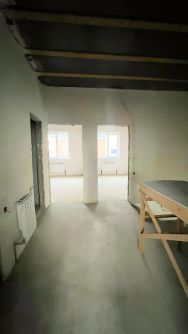 На первом спальня 17м2 , раздельный санузел и просторная кухня-гостиная с 2 световыми зонами ( окно и выход на задний двор)