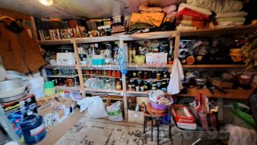 Имеется хозпостройка, которая используется для хранения инвентаря и закруток.