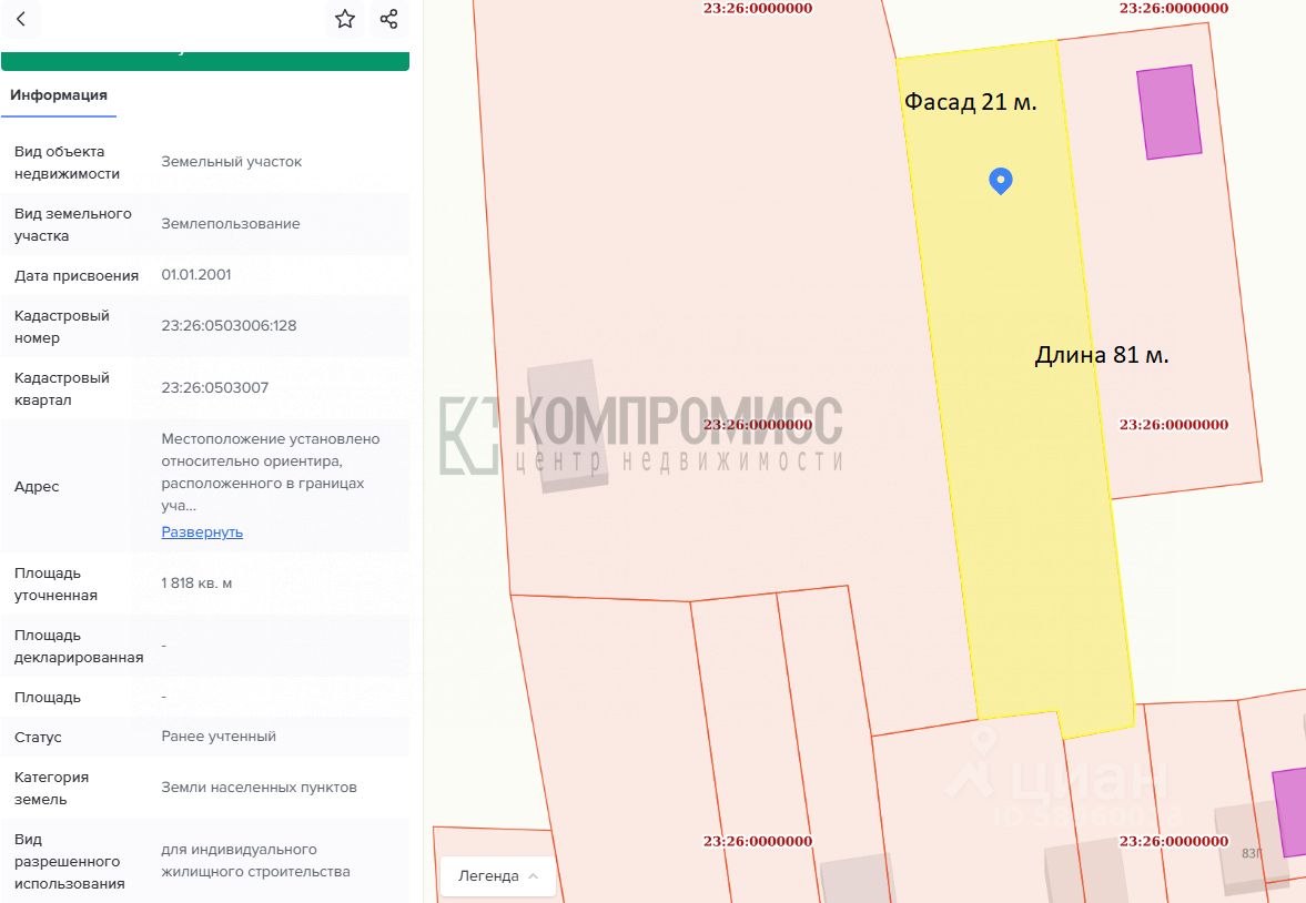 Земельный участок по адресу: Краснодарский край, Северский район, посёлок городского типа Ильский, улица Димитрова, дом 1е.