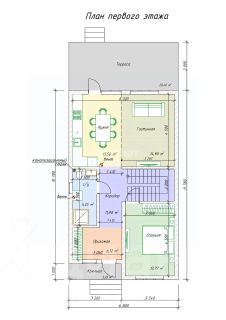 На первом этаже: спальня, санузел, большая кухня-гостиная.