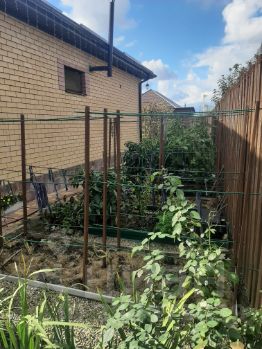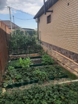 На участке выделены 3 зоны: сад, огород и цветник. В саду высажено 16 плодовых деревьев, включая инжир, финик, хурму, персик и кусты смородины, крыжовника, малины, жимолости. Все, деревья, кусты и виноград молодые, но уже плодоносят. Под виноград сделана капитальная металлическая арка, есть и винные сорта и столовые. В цветнике высажены магнолия, розы разных сортов, пионы, лилии и много других.