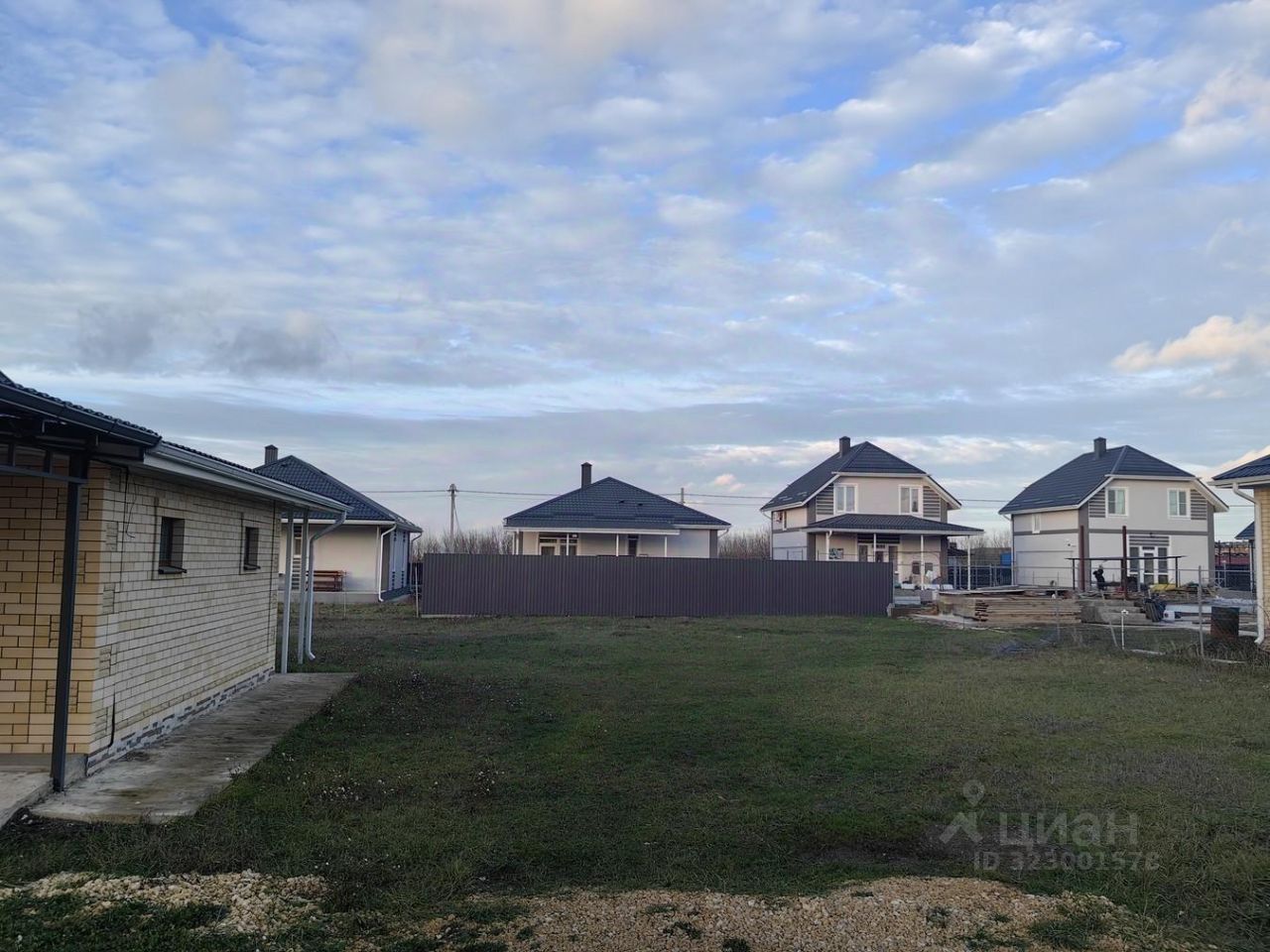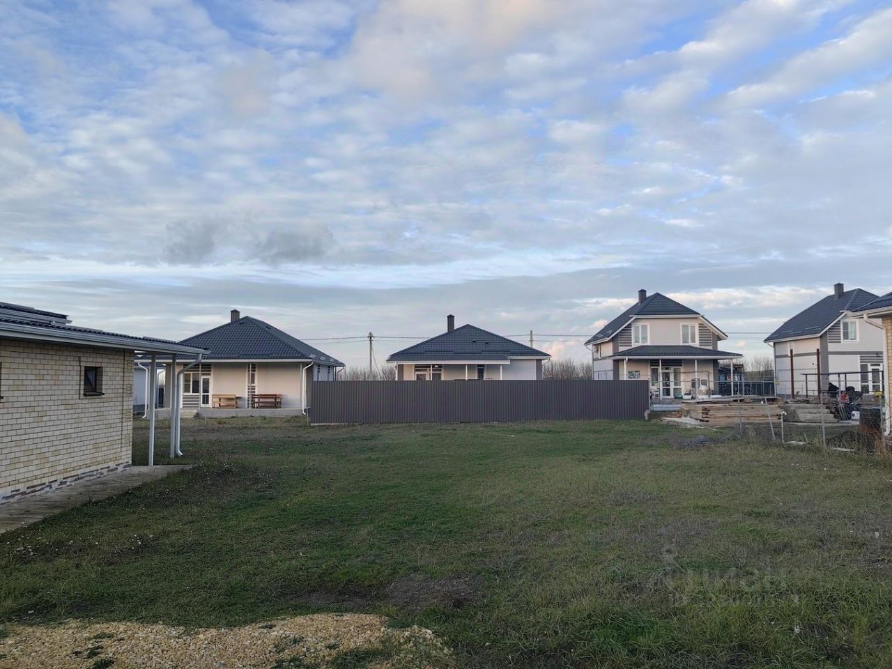 Участок огорожен. Вокруг жилые дома.