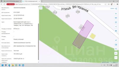 Площадь участка 670 квадратных метров. Фасад - 14 метров. Категория земель - земли населённых пунктов. Вид разрешённого использования - для садоводства и огородничества.