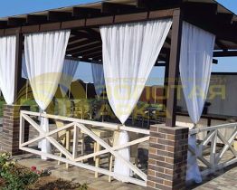 - современная беседка для отдыха с качелями,