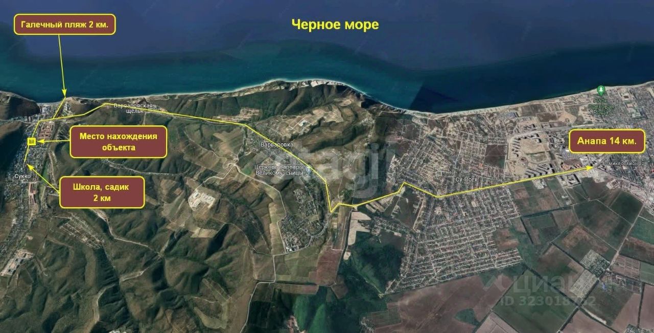 Участок площадью 13,1 сотки расположен в курортном поселке Сукко. Земельный участок характеризуется ровным рельефом, что упрощает и удешевляет процесс возведения дома. Ключевым преимуществом является бессрочное право собственности и полная юридическая чистота, подтвержденная длительной историей единственного владельца. Все необходимые коммуникации, включая электричество и водоснабжение, подведены к границе территории, также предусмотрена возможность установки септика.