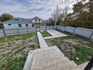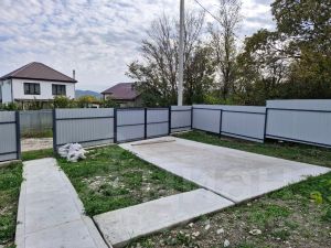 Участок ровный, огорожен пло периметру. Для удобства уже забетонированы дорожки к дому, парковочное место на 2 автомобиля. .