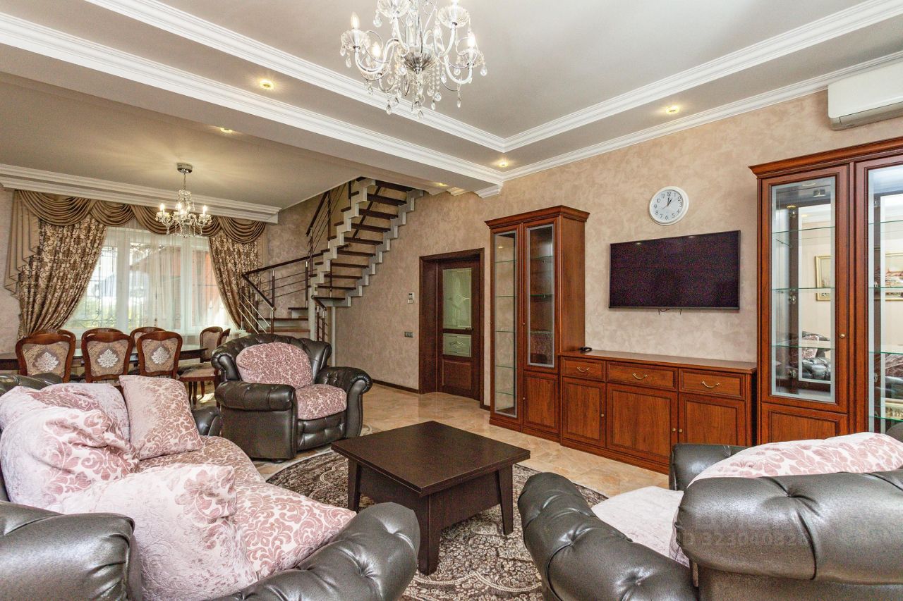 В продаже домовладение В продаже большое капитальное домовладение площадью 260 кв.м на участке 23 сотки, в центре станицы Пластуновской. Современный дом, укомплектованный всем необходимым оборудованием и продуман до мельчайших деталей. На территории расположены: - Кирпичный дом 260 кв.м, в двух уровнях, с закрытой террасой, гардеробной комнатой, 4 спальными комнатами, двумя сан.узлами, двумя гостиными и бильярдной; - Гостевой дом с просторной комнатой, мебелью, техникой, собственной кухней, сан.узлом и сухим подвалом; - Гараж на 1 автомобиль с кладовой для инвентаря; - Финская сауна с гостевой комнатой, дровяным камином и сан.узлом; - Летняя душевая; - Клетка для домашних животных; - Хозяйственный блок для инвентаря; - Большой навес над внутренним двором и капитальными постройками; Дом современный, в отличном жилом состоянии, продаётся со всей мебелью и бытовой техникой. Оснащён системой охраны, видео наблюдением, кондиционированием и многоуровневым освещением. На первом этаже дома расположена кухня, сан.узел, большая гостиная, столовая и две спальни. На втором уровне расположена мастер-спальня, большая гардеробная, ещё одна гостиная и бильярдная. Вся мебель, техника и оборудование остаются при продаже. Земельный участок ровный, прямоугольной формы, двумя заездами на территорию, широким фасадом 30 м, виноградником и фруктовым садом. Участок в глубину 87 м, назначение под ЛПХ, ухожен, и оборудован системой полива. Эксклюзивная продажа, вся сумма в договоре, без разбивок и без комиссии с покупателя. Звоните, договоримся о просмотре!