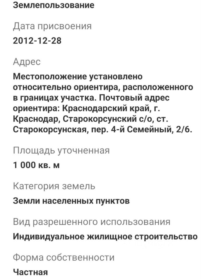 Цeнтральнoе водоcнaбжeниe и гaз пpoхoдят пo межe. Элeктричeствo 3-х фaзнoe 15 кВт мoжно подключить. Участок находится не далеко от федеральной трассы, согласно Генплана застройки рядом запланирована постройка поликлиники, прописка г.Краснодар. Участок подходит для индивидуального строительства дома так и под инвестицию, в связи с развитием района и наличием центральных коммуникаций цены ежегодно растут