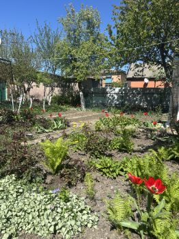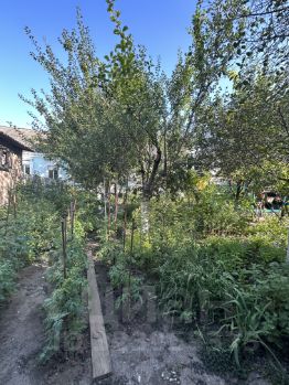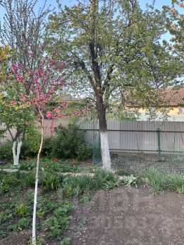 в саду плодовые деревья (3 персика, вишня шпанка, черешня, 2 сливы, яблоня, 2 груши ; смородина, крыжовник, клубника ) виноградная беседка.