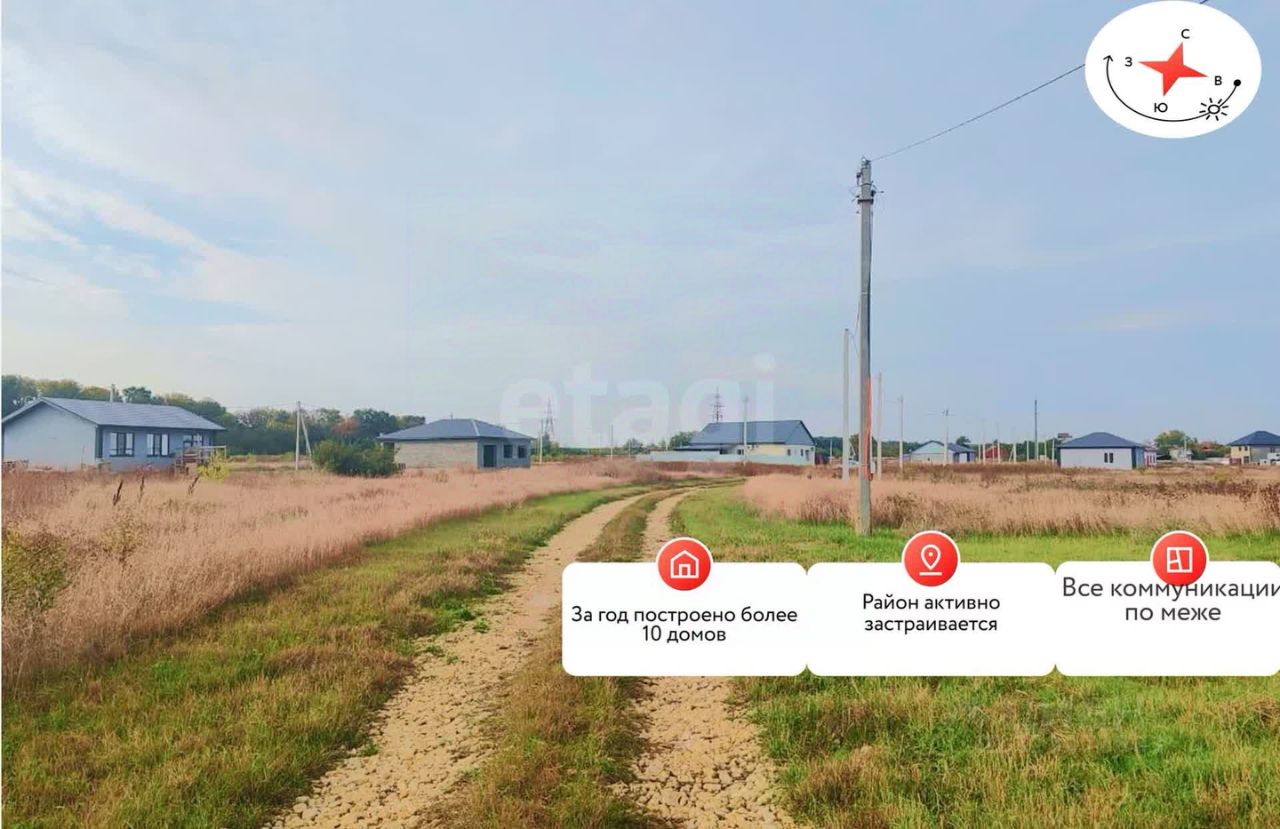 Все коммуникации проходят по меже. Рядом застроенная жилая застройка, район постепенно застраивается.