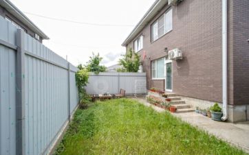 Улица широкая. Во дворе, за домом, небольшая хоз постройка, газон мятлик премиальный-клевер, на который устанавливается летом бассейн. Взрослым, детям, и всем вашим гостям будет приятно ходить босиком по травке!