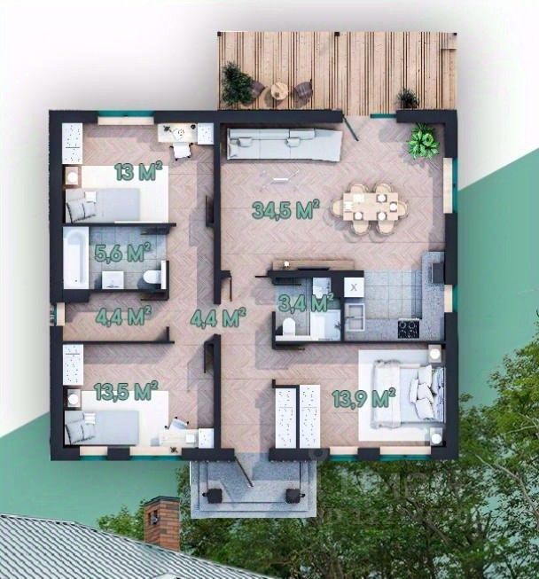 Также предусмотрена спортивная и детская площадка, где вы сможете отдохнуть всей семьей.