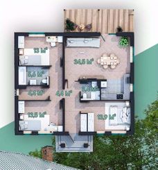 В проект дома включены теплый пол ( кухня, коридор, санузел), стяжка пола , радиаторы отопления, штукатурка под поклейку обоев, парковка бетонная , бетонная отмостка вокруг дома, огороженный участок, откатные ворота.