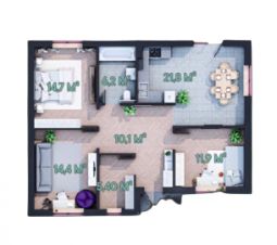 В проект дома включены теплый пол ( кухня, коридор, санузел), стяжка пола , радиаторы отопления, штукатурка под поклейку обоев, парковка бетонная , бетонная отмостка вокруг дома, огороженный участок, откатные ворота.