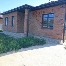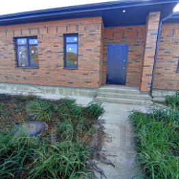 Дом имеет свайно-ростверковый фундамент , стены из газоблока толщиной 200 мм , облицовка керамический кирпич 120 мм, кровля покрыта металлопрофилем.