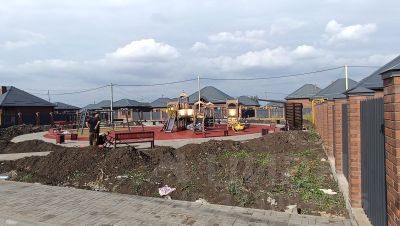 На закрытой территории коттеджей проведено декоративное озеленение и продумано уличное освещение. В центральной части коттеджного поселка предусмотрен вишневый парк с детскими и спортивными площадками. Внутри комплекса — асфальтированные дороги и предусмотрены тротуары для пешеходов.