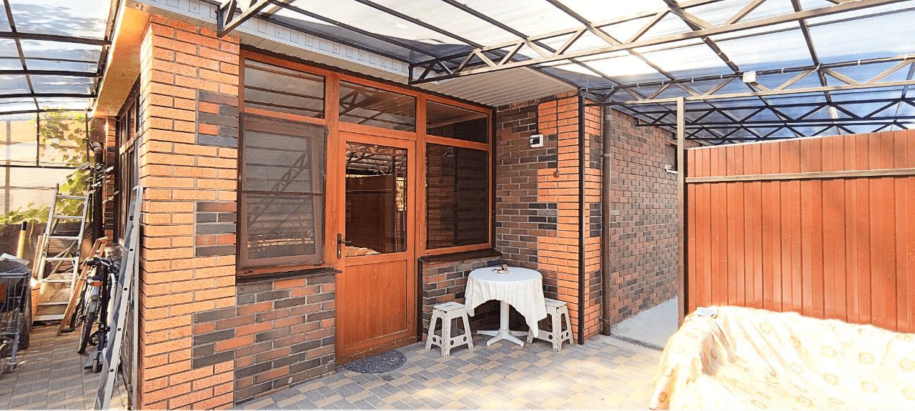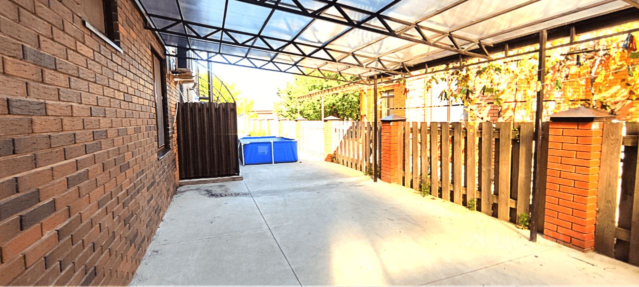 По факту 100 кв.м. внутренних помещений. Земельный участок позволяет парковать несколько автомобилей, установить бассейн, организовать зоны отдыха и хранения, и даже иметь небольшой сад с плодоносящими абрикосом, сливой, вишней, гранатом и пр. Двор накрыт навесами на металлокаркасе.