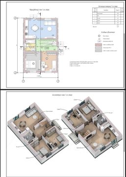 Планировочное решение :Четыре спальные комнаты ,Кухня -гостинная с выходом на задний двор ,санузел ,холл.
