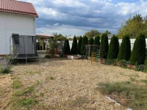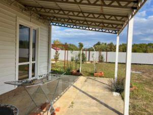 Рядом с домом расположена бытовка размером 3х4 метра, где можно хранить стеллаж и садовые инструменты.