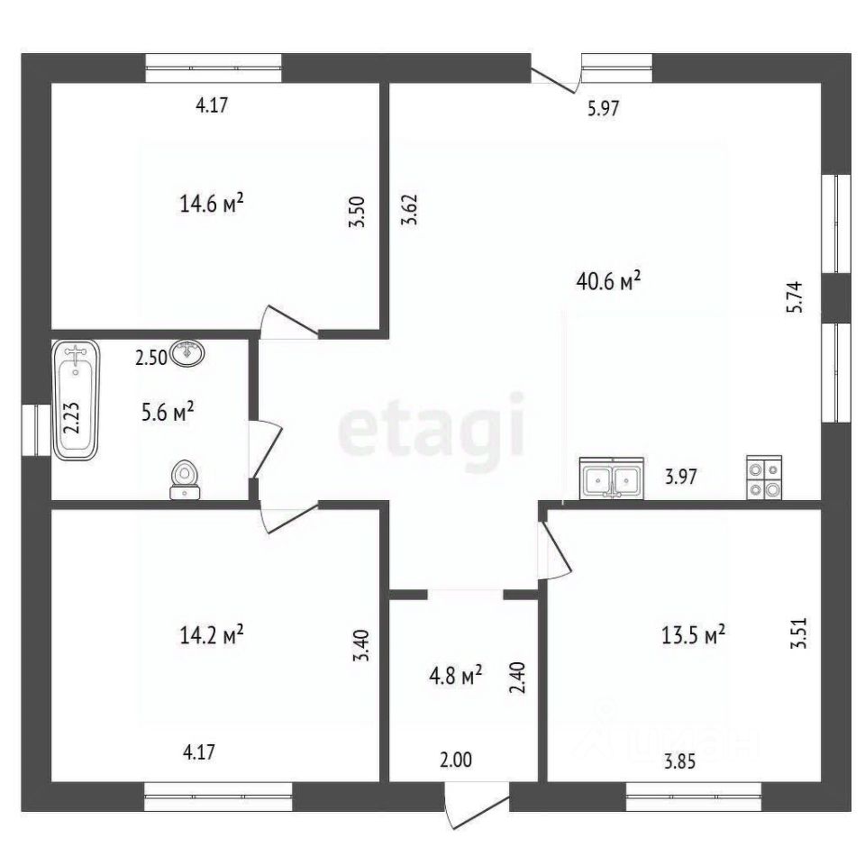 Презентабельный дом площадью 96 кв. м расположен в центре поселка Уташ, сочетая преимущества развитой инфраструктуры и транспортной доступности с тишиной и приватностью частного владения. Удаленность в 300 метров от главной дороги обеспечивает удобный выезд в любом направлении, одновременно ограждая от шума и пыли. Планировка дома отличается продуманностью и эффективным использованием пространства: три изолированные комнаты по 14 кв. м каждая предоставляют возможности для организации личных зон, а просторная гостиная-кухня площадью 38 кв. м служит комфортным центром семейной жизни. Все коммуникации центральные, включая газ, магистраль которого подведена вдоль забора. Конструктивные особенности подчеркивают надежность и долговечность объекта: стены возведены из керамзитобетонных блоков, утеплены современным материалом пеноизол, что гарантирует высокую энергоэффективность и низкие затраты на отопление. Фасад облицован цельным кирпичом, обеспечивая зданию солидный внешний вид и минимальные требования к дальнейшему обслуживанию. Данный объект представляет собой готовое решение для круглогодичного проживания.