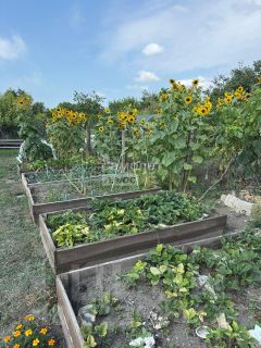 Красивый плодоносящий сад, цветник, теплица с сезонными посадками.