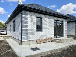 Дом уже готов с предчистовой отделкой: тёплые полы, полусухая механизированная стяжка пола, смонтировано отопление, установлены радиаторы и котел, стены отштукатурены и отшпатлеваны, выполнена разводка электрики и сантехники.