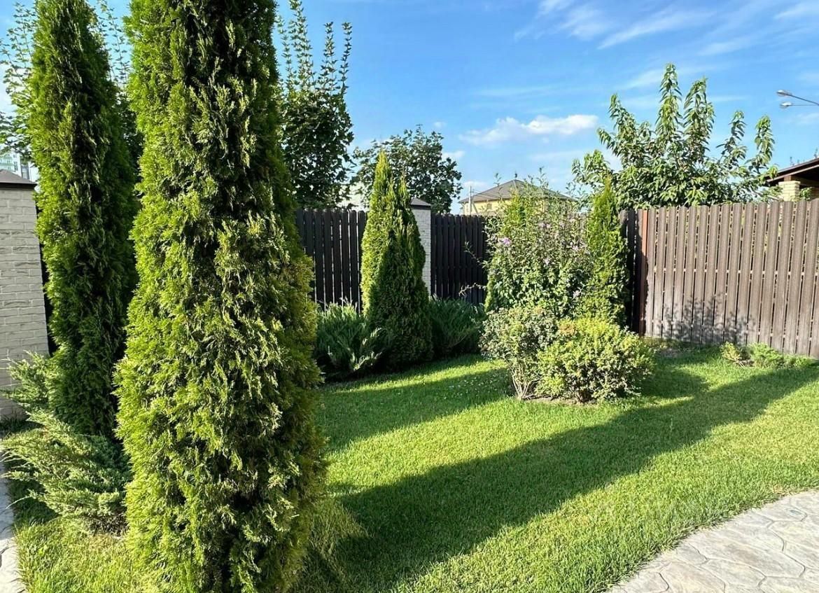 *ТЕРРИТОРИЯ: печатный бетон, газон. Высажены плодовые деревья ( яблоня, персик, слива, вишня, черешня, инжир, киви); ягода ( малина, клубника, ежевика, голубика); хвойные деревья: туи, можжевельники; лиственные деревья : липа, рябина, клен, береза. Кустарники.