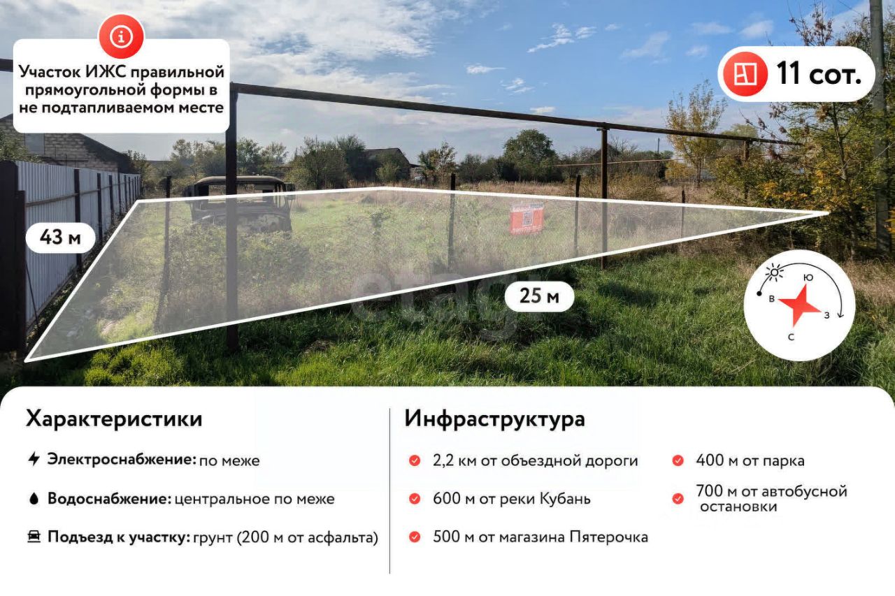 Земельный участок площадью 11 соток. Находится в неподтапливаемом месте!