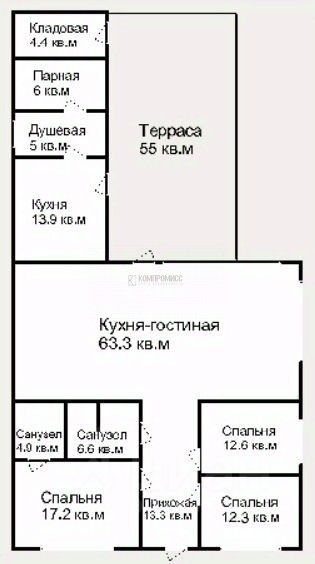 Дом площадью 159 кв.м 2016 года постройки с качественной отделкой и удачной планировкой. В доме три спальни, одна из которых с собственным санузлом, большая кухня-гостиная с камином и выходом на террасу, баней, летней кухней и кладовой. На мансардном этаже площадью 90 кв.м оборудована бильярдная.