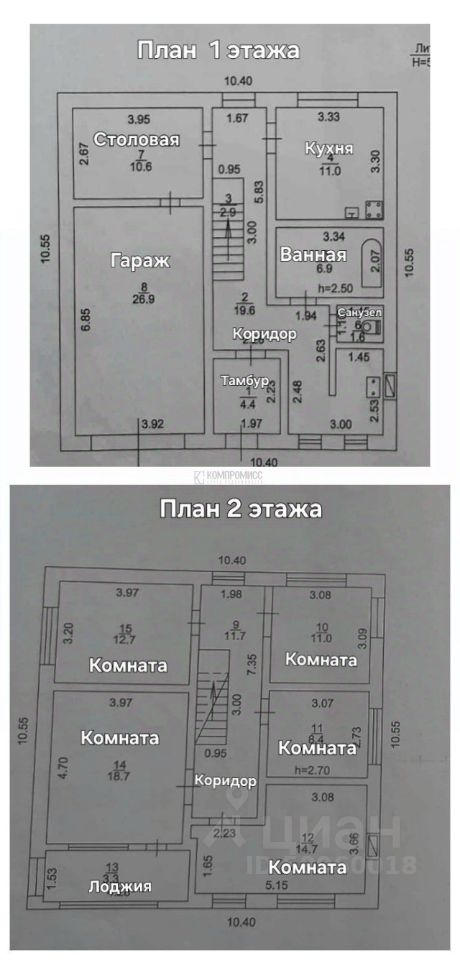 На втором этаже 5 раздельных комнаты, лоджия и коридор.