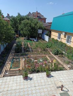 Ухоженный двор и огород с плодоносящими деревьями позволят выращивать экологически чистые овощи и фрукты. Придомовая территория правильной прямоугольной формы сделают возможным строительство еще одного дома или гостиничных номеров. Двор вымощен тротуарной плиткой, есть навес.