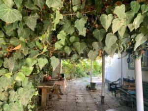На земельном участке размером 975 кв. м посажены фруктовые деревья и виноград .