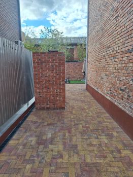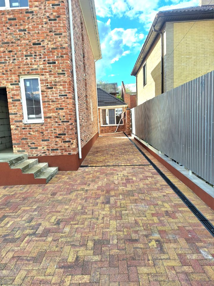 Земельный участок под ИЖС 4 сот. правильной формы. Двор огорожен выложен тротуарной плиткой. Во дворе септик, скважина. Откатные ворота, калитка. Электричество 15 КВт. Газ проходит по границе с участком, можно подключать.