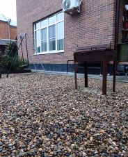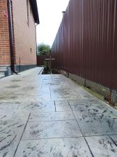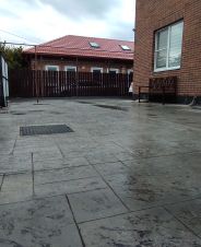 Ухоженный двор: Двор покрыт печатным бетоном, что создает аккуратный и практичный вид, а также обеспечивает удобство в любую погоду.