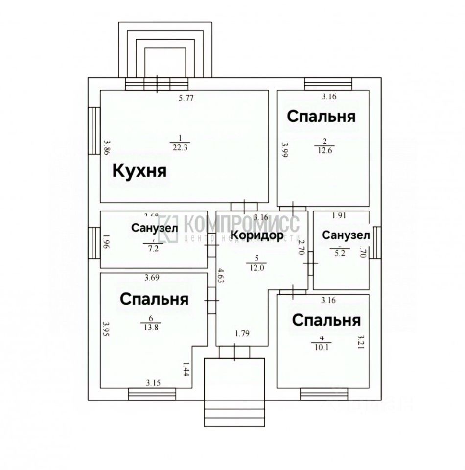 В доме 3 комнаты, просторная кухня с выходом в сад, 2 санузла и коридор.