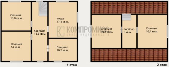 На 1 этаже 68,9 кв.м.: 2 комнаты, кухня, сан.узел, коридор.