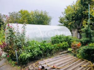 Земельный участок 10 соток, ухожен, высажен сад, много декоративных растений. На участке есть навес, гараж, хоз.постройки. Во дворе- плитка.