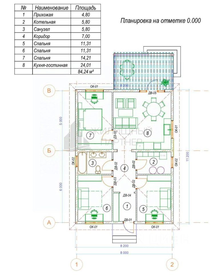 В доме 3 спальни, большой санузел, бойлерная (есть возможность установки второго сан. узла), просторная кухня-гостиная, выход на террасу.