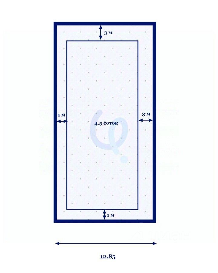 Фасад: 12,85 метра на одной стороне и 13,20 метра на задней части, что обеспечивает возможность комфортного размещения жилого дома и придомовой территории.
