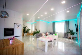 В доме выполнен современный ремонт, парящие потолки, световые линии.