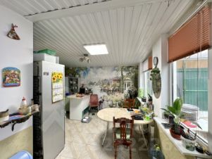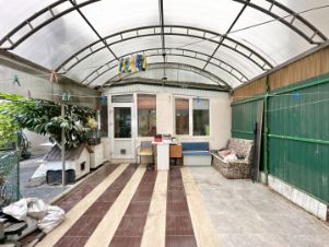 По фасаду участка ул. Шевченко стоит жилой купеческий дом, который имеет угловую форму и вторая часть дома располагается вдоль соседнего участка вглубь огорода. В доме 2 входа/выхода, т.е. разделен половины. В первой части дома (70 кв.м.) , находятся: 2 изолированные комнаты, кухня, прихожая, совмещенный санузел. Во второй половине дома (55 кв.м.) 4 комнаты, она из которых изолированная , кухня, совмещенный санузел, прихожая.