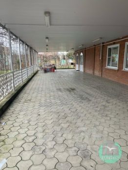 Двор выложен тротуарной плиткой, а под металлическим навесом во дворе есть место для парковки шести машин.