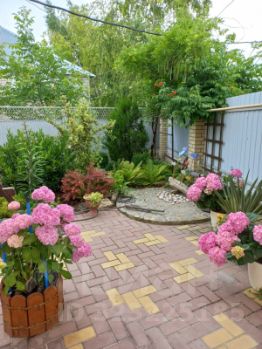 Территория двора вымощена тротуарной плиткой, а именно придомовая территория, машино место, входная группа к дому, навес для автомобиля.