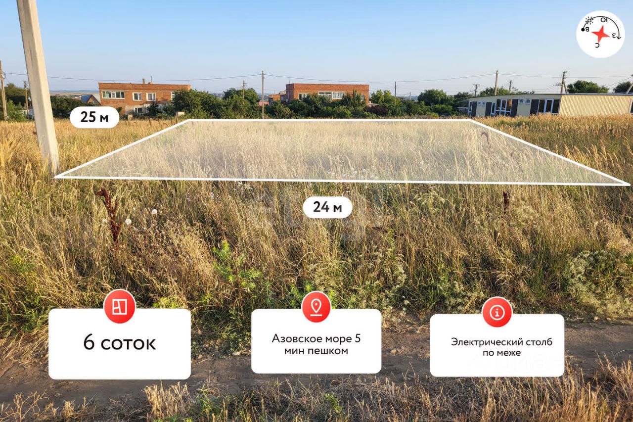 Продаётся участок площадью 6 соток с фасадом 24 метра в поселке За Родину на первой линии к морю.