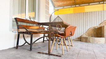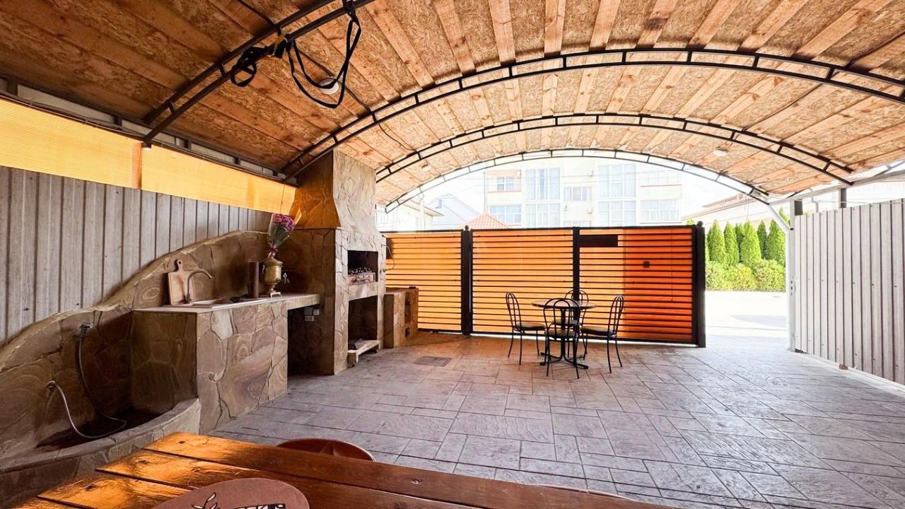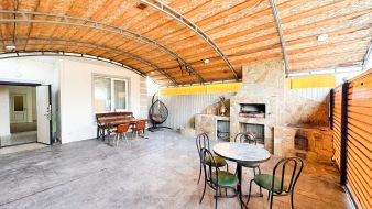 Двор вымощен плиткой, есть шикарная мангальная зона с водой, отдельным освещением и водо-отведением.