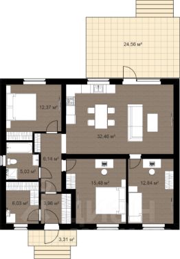 Рациональная схема с минимумом коридоров включают гардероб и просторную мастер-спальню
